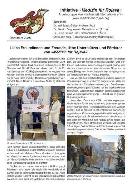 Dezember 2025: neues Info von Medizin für Roja erschienen: